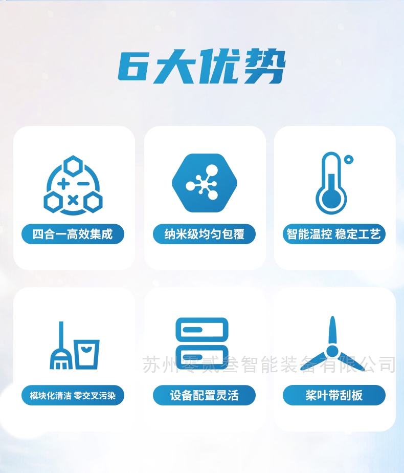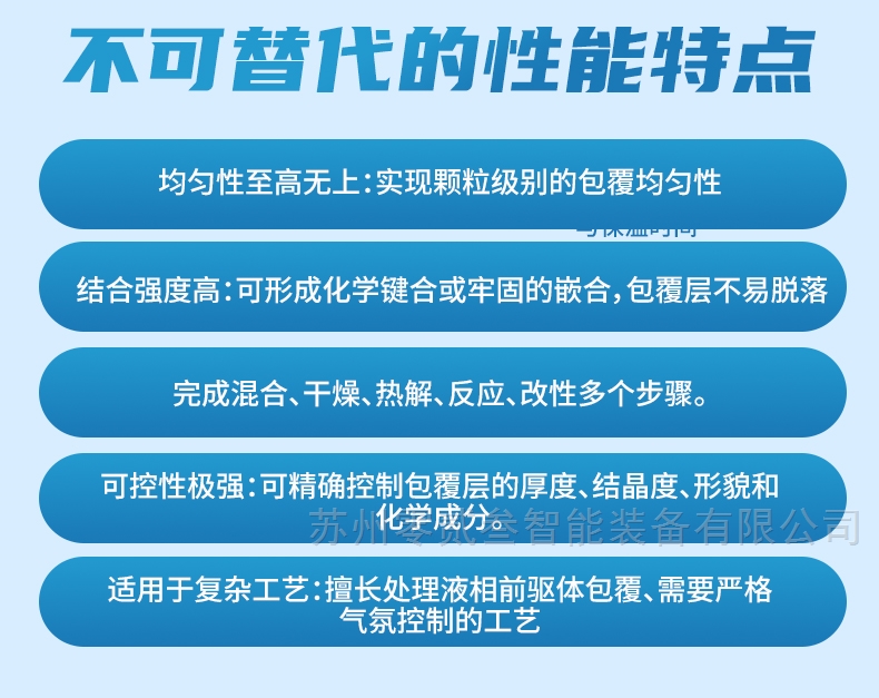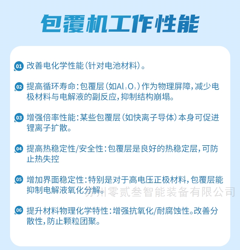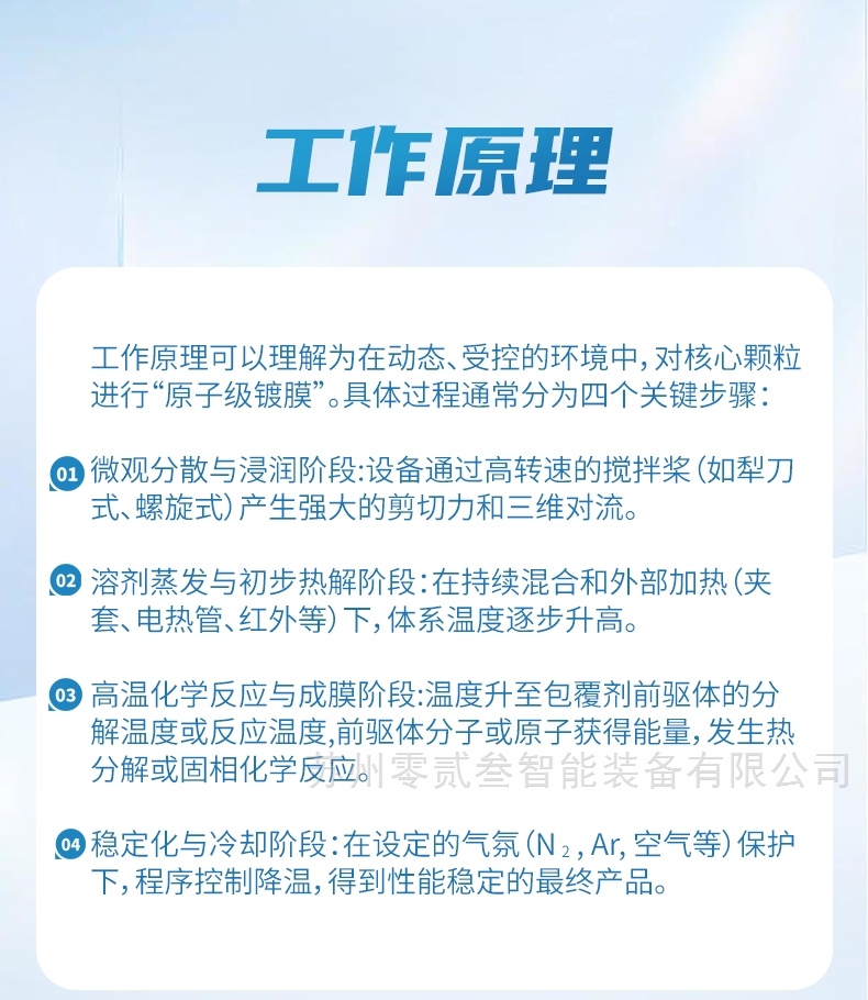2、纳米级均匀包覆:采用高速剪切分散技术、离心流场设计,实现粉体颗粒表面纳米级均匀包覆,包覆率>99%;