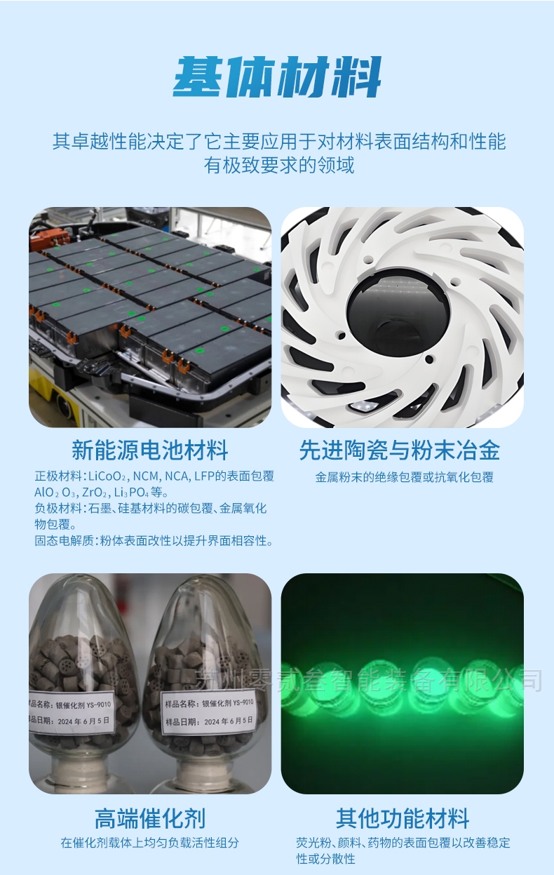 ●陶瓷粉体:如Al₂O₃, SiC的表面改性以提高烧结活性和分散性。