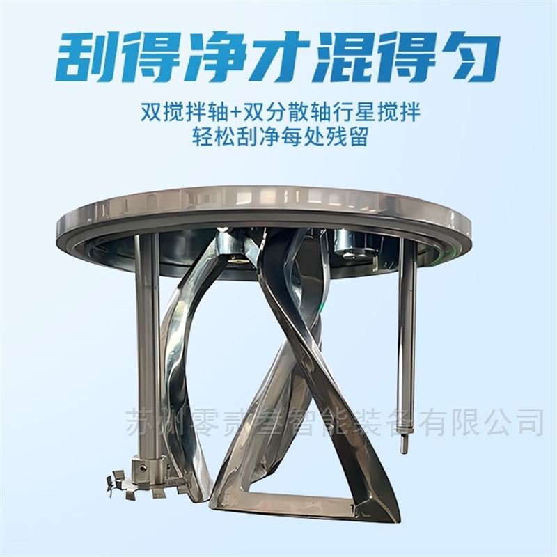 5、多种搅拌形式供选择:单轴分散、单轴乳化、双麻花框搅拌、框式搅拌,桨叶式,螺带式,推进式,牛角 式,钩形,碟式等;